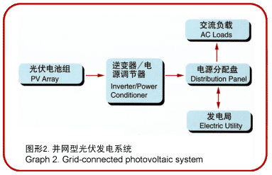 The electricity generated from the solar cell phalanx is transported to the AC electric power network or to the AC loads directly through the inverter.