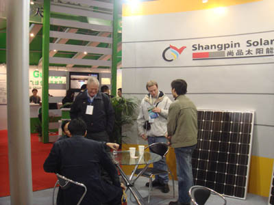 Under the energetical support of company leader, 2007 Newgrace International Solarenergy and PV (Shanghai) Exhibition which we Shangpin Solar (Wuxi Central Science & Technology) attended has made the satisfactory achievement. During the exhibition, the visitor is in an endless stream. Our professional sales introduced our solar modules and cells to each visitor with careful patience . A lot of visitors express that is very interested in our products, carry on deep understanding , plan to visit factory recently.
